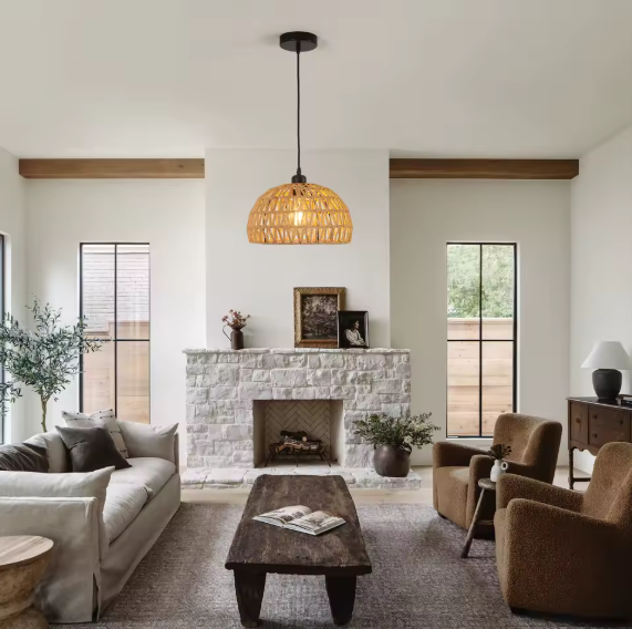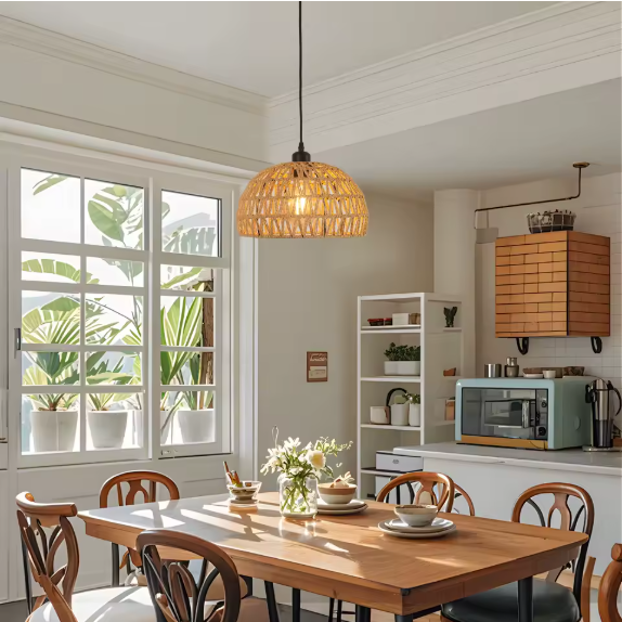 Apportez une ambiance chaleureuse et naturelle à votre intérieur avec ce lustre bohème en rotin, au style ferme et nordique. Son design tressé diffuse la lumière de manière douce et décorative, créant une atmosphère accueillante et élégante dans un salon, une cuisine ou au-dessus d’un îlot central.